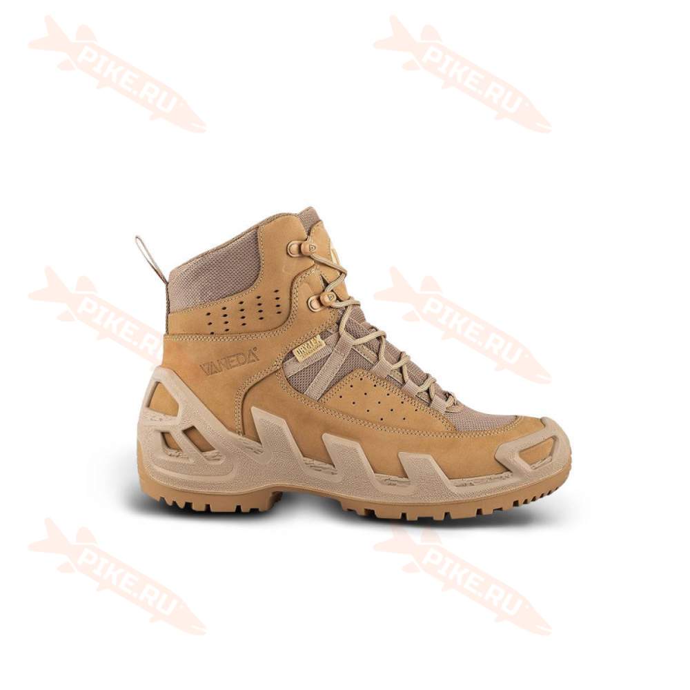 Ботинки Vaneda V-CLUTCH 1192 PRO MID ON DUTY сделаны из водонепроницаемой дышащей нубуковой кожи и Cordura (полиамид 6.6). Внутренняя подкладка из воздухопроницаемого и устойчивого к истиранию антибактериального полиэстера. Промежуточная подошва особой плотности (из полиуретана), равномерно распределяет вес благодаря высокой конструкции стенок ботинка, тем самым защищает ногу во время длительной ходьбы и лазания.