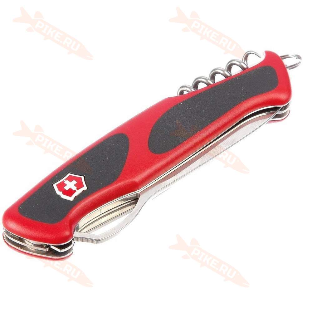 Нож Victorinox RangerGrip 61 с фиксатором лезвия "liner lock", лезвие из нержавеющей стали с петлёй для открывания 1 рукой, рукоять из красного нейлона с чёрными вставками.