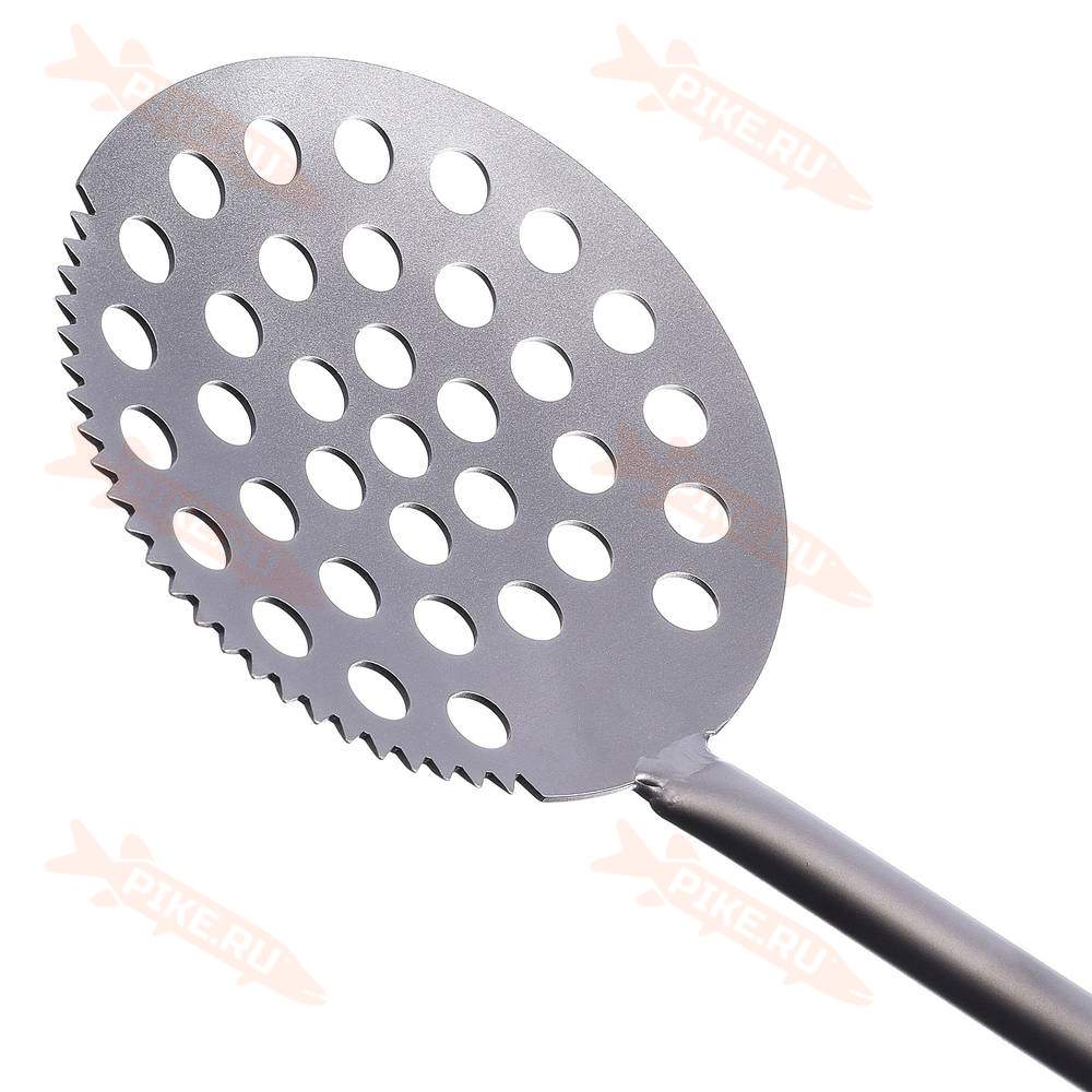 - Диаметр шумовки составляет 12 см, этот размер позволяет очищать довольно широкую лунку под крупную и трофейную рыбу